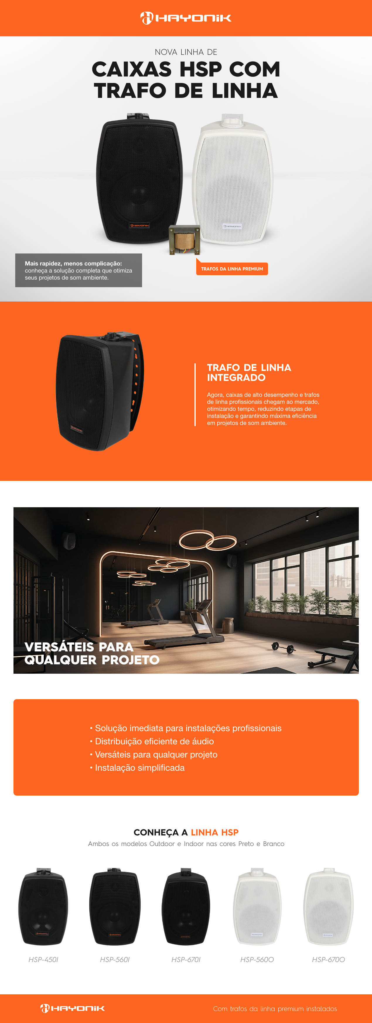 A Caixa de Som Indoor Com Trafo Hayonik HSP-450IB é uma solução ideal para quem busca qualidade sonora e durabilidade em ambientes internos (Indoor). Projetada especialmente para integradores de som ambiente, instaladores de automação residencial, lojistas, arquitetos e construtoras, esse modelo garante uma sonorização de alto desempenho.